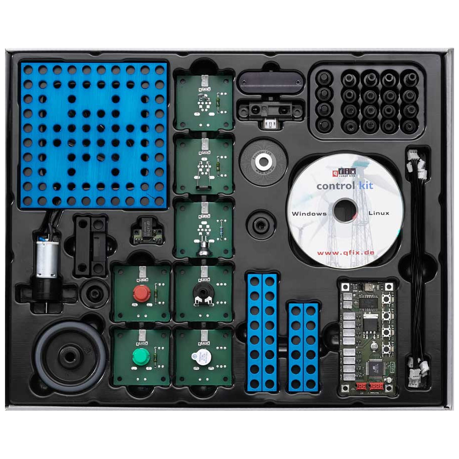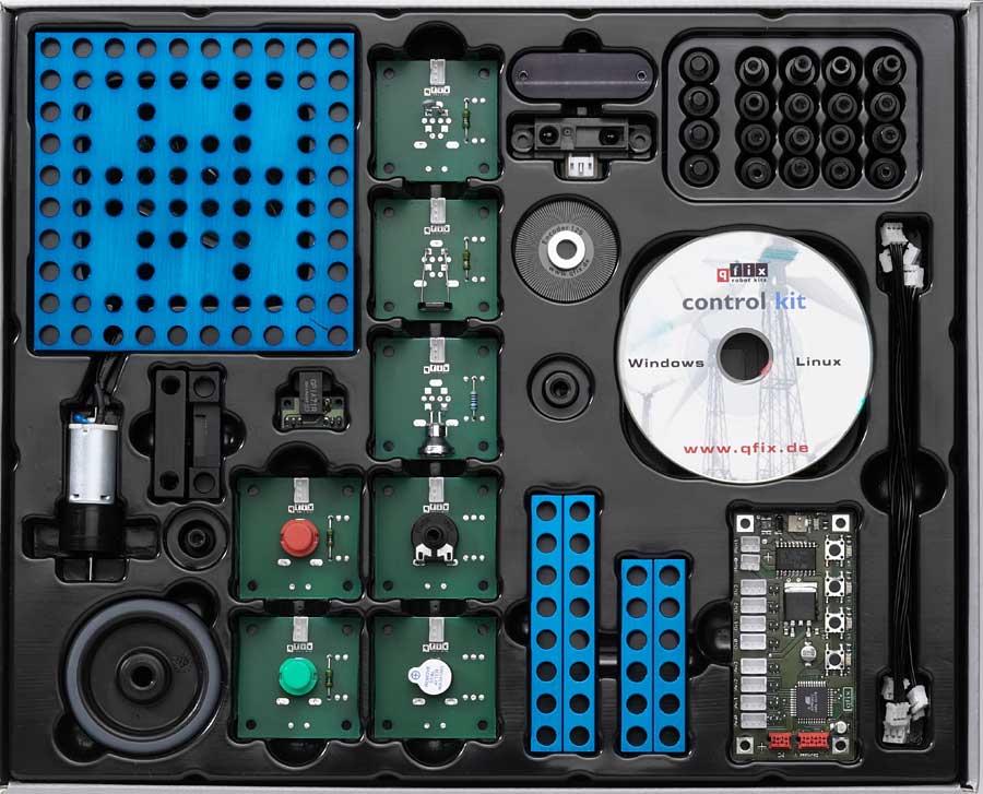 Das ControlKit ist ein Bausatz, mit dem Schüler kleine mechanische Aufbauten bauen und diese dann per Microcontroller-Technik und der nötigen Software zum Leben erwecken können.